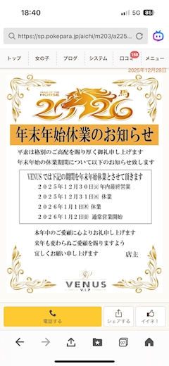 のの 🗽VENUSVIP🗽💗 年末年始営業日 💙