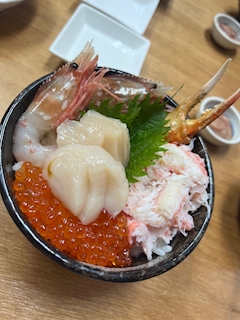 おはるーん 朝海鮮丼食べよーかなーって思ってたけど 決めてた 市場が業者向けってぽくて 海鮮丼とかなかった!ww 食べようと決めてた市場が南樽市場で ここは安かった! けど海鮮丼とかはなかった! そんで三角市場って場所に行った! ここはまじで観光客向けすぎて 値段も高い!けど色んな料理たべれるところあった! 今日の海鮮丼は 好きなの4つ選べる丼 好きな物しか乗ってないから余計に美味すぎたあ😋💓 カニはやっぱうんまいいい🥰🥰🥰 てか見て見てみてー! やばい立派すぎ😱😱😱😱😱 1kg1万超えで これぐらいで7万?wwwwって言ってたwwww やばすぎるwwww 買ってませんけどwww 立派すぎてお写真頂きました📸笑 さあてさあて ご飯と食べて少し休憩も出来たのだ( ˙꒳˙ )v また元気になったので とりあえずお土産たちをまとめて郵送しに行って その後はすすきの行こうかなと🥺 思っております 小樽も楽しかったなん🫶🏻🫶🏻 また夜載せるね🌃🌙*゚ ばいばーい ˙ᵕ˙ )ノ゙