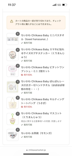 おはるん 本日おはるかおやすみです なんかあったら連絡待ってますん💌💭 洗濯物取りに行ってきますん。。。。 チーん。 今日から発売のちいかわベイビーズの商品 11:00スタートで11:06くらいに買い物終わったのかな カゴに入れて次の画面進んだら チェックアウトってなってて20分くらい待たされ その時間は商品取り置きみたいな感じにならないらしく どんどんどんどん時間が終わるまでに 商品売り切れて なんかほんとウザかったな 何その待ち時間って感じだし カゴに入れたのに買えないってのもうざすぎて 結果欲しいもの全然買えなかった なんか有り得なさすぎる。 早く再販しないかなー なんか朝からブルー💙 な気持ち🦋🌧💙ྀི 通信の問題とかでは無さそうだけどね😮💨 改善して欲しい。 ではでは~ 行ってきます🚗³₃