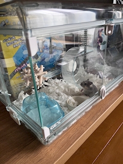 わーい 諦めず観察し続けたら すいくんおきたー🐹💓💓💓💓💓 って私が30分くらい寝て起きたら カリカリカリカリしてた🤣 なんの音?!?って思ったら すいくんだった🐹💗💗💗💗💗💗 夜は結局23:00くらいに起きてきて 1時過ぎには就寝してたww 昼間たくさん動いたのかなー? ちょっとお部屋のもふもふも移動されてたし💭💞 とりあえず可愛すぎて癒し~😵💫💗💗💗 朝早起きで下見に行ったらもう、起きてた🥹 1回7:00くらいに起きてやる事やってから また1時間くらい寝るんだけど私 今日はすいくん観察しすぎて 寝る時間少なかった😄 キャベツあげたら、持って行って自分で食べるかなぁって 思ったら私が持ったままずっと食べてて きゅん💓 沢山食べて元気に大きくなるんだぞぉ🧡🧡