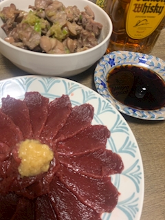 今日もお疲れ様です🫶 昨日またおつまみ馬刺し🤭 おいしすぎるはまっちゃうね〜〜 にんにくのせて、生姜醤油にたっぷりつけて もう、幸🤤 毎日でも食べたいっ 🐾